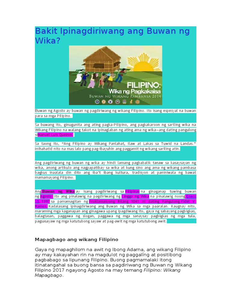 Bakit Ipinagdiriwang Ang Buwan Ng Wika Pdf